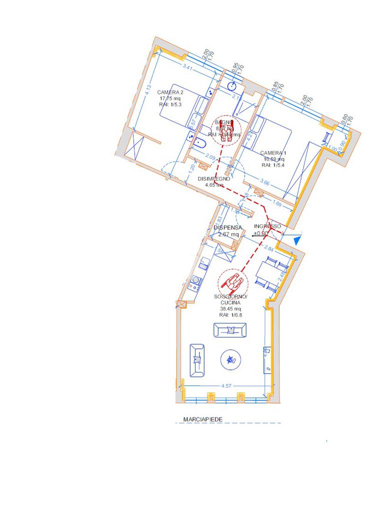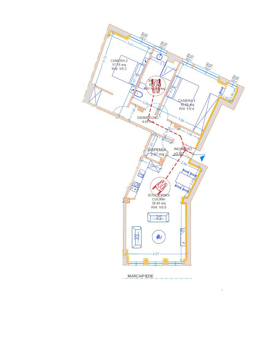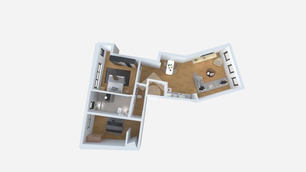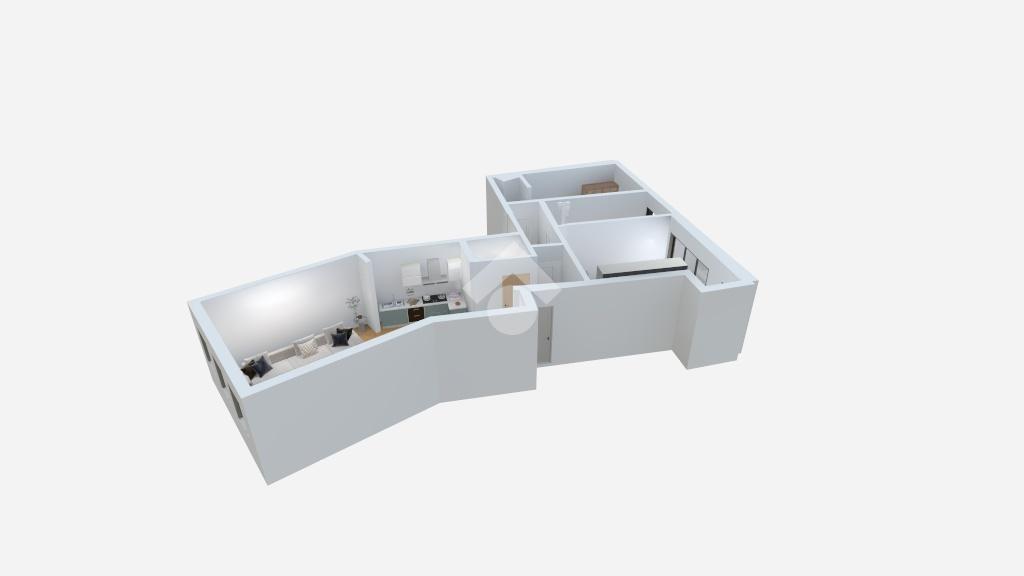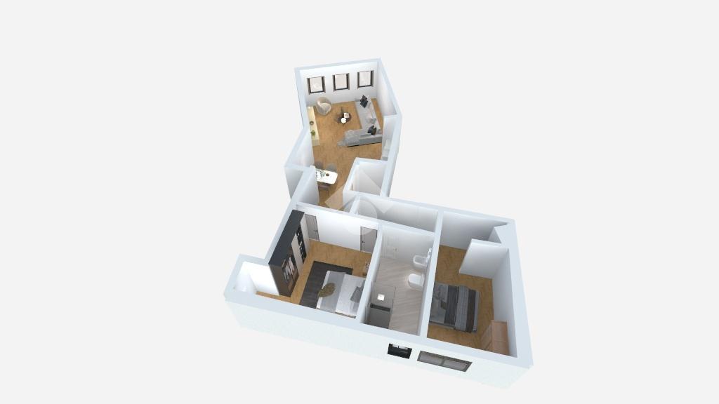 La soluzione sarà composta da una zona giorno con soggiorno e cucina a vista con angolo pranzo, due camere da letto e un bagno completo.